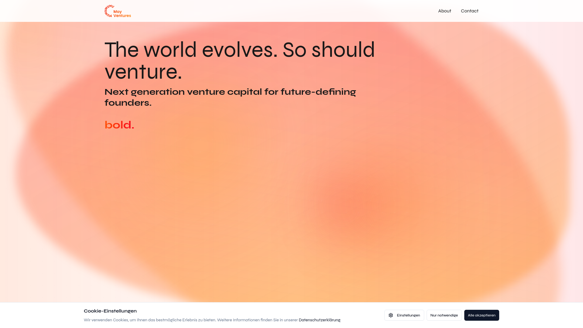 May Ventures ist ein junges, dynamisches Venture Capital Unternehmen mit Sitz in Münster, das sich darauf konzentriert, innovative Gründer in der Frühphase zu fördern. Gegründet von erfahrenen Partnern, wie Max Derpa und Dominik Lohle, legt May Ventures großen Wert auf eine partnerschaftliche Zusammenarbeit und aktives Engagement in den portfoliounternehmen. Der Fonds versteht sich als Begleiter visionärer Unternehmer und investiert gezielt in Startups mit hohem Wachstumspotenzial und disruptiven Geschäftsideen. May Ventures setzt neue Maßstäbe im Bereich Next-Generation-Venture-Capital und unterstützt Gründer nicht nur finanziell, sondern auch durch ihr Netzwerk und strategische Expertise. Die Erfolge des Fonds zeigen sich in mehreren erfolgten Exits und einem breit gefächerten Portfolio innovativer Firmen.